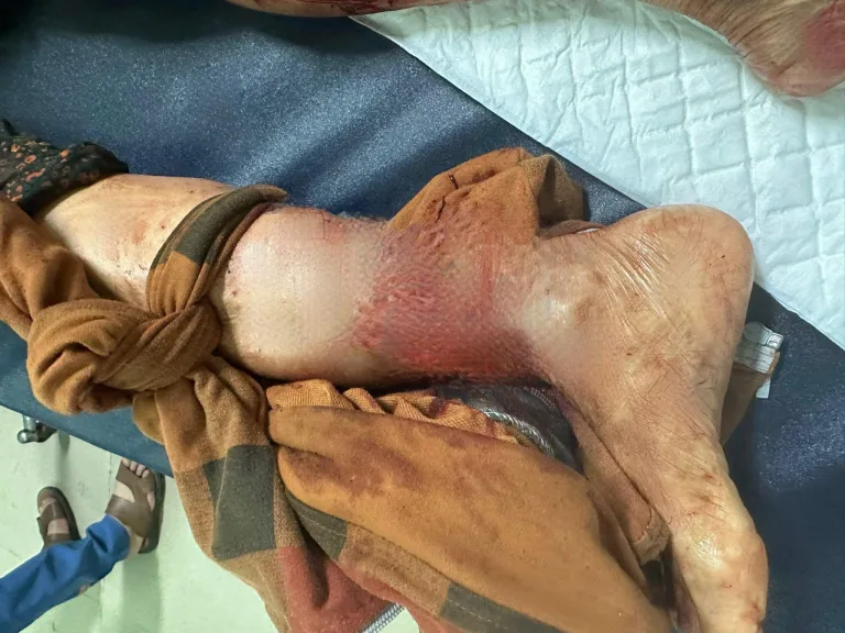 Qua khai thác được biết, bệnh nhân bị chó nhà cắn cách đây 3 ngày. Bệnh nhân bị đứt rời bàn chân phải và nhiều vết cào xé trên người.